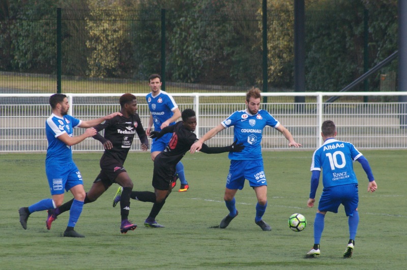 Dès le coup d’envoi, les choletais sont présents et pressants. Il faut attendre le quart d’heure de jeu, pour voir les ‘genôts’ sortir de leur base. La rapidité de Johann Heyman fait la différence sur le côté droit. Le centre est repris par Timothée Ferand, la frappe est détournée dans les buts de Jonathan Monteiro (