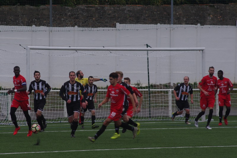 1-0, 15’). Le Soc est à la manœuvre avec un bon mouvement finalisé par Guillaume Rezeau (20’) et un tir de Mickael Brodie qui ne trouve pas le cadre (24’). Les visiteurs sortent un peu de leur base et ils se procurent des frappes de Valentin Barbault (27’) et (32’). Si de nouvelles intentions des adversaires, mais sans réel danger (33’) et (40’), ce sont les protégés de Nenad Zekovic qui terminent mieux ce premier acte. Guillaume Rezeau lance en profondeur Hans Razananoro et creuse l’écart pour les siens (