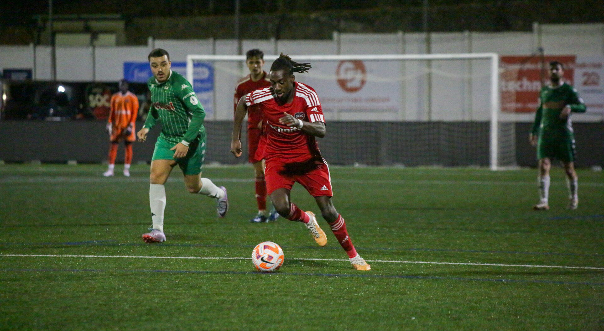 Le SOC, poussif, concède la première occasion du match mais, au fur à mesure, se procure, à son tour, des opportunités. Au quart d’heure de jeu, Bangoura, ouvre le score et valide une belle sortie de balle choletaise (0-1, 15’). Quelques minutes plus tard, il viendra trouver la lucarne Herbetraise et doublera la mise (0-2, 23’). Sur une action similaire, Bangoura s’offrira un triplé en 20 minutes (0-3, 36’). Cependant, un manque de concentration vient rapidement punir nos Rouge et Noir (1-3, 45’).